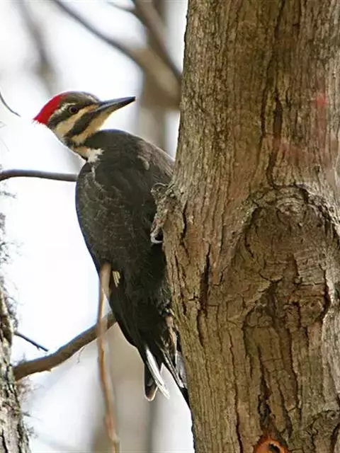 黑啄木鸟属䴕形目、啄木鸟科,是一种大型的啄木鸟,体长45-47厘米,翼展64-68厘米,…
