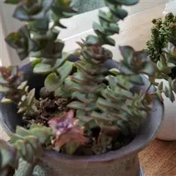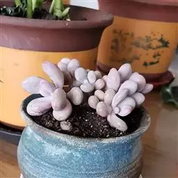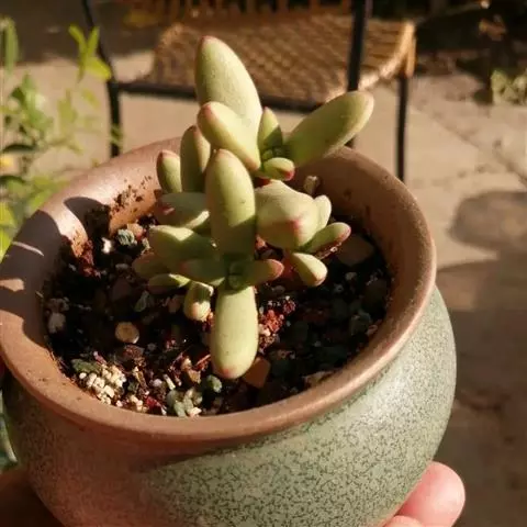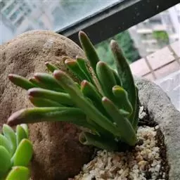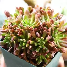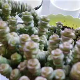 繁殖一般就是砍头,取健康有生长点的枝条,按照3至5厘米高左右一段剪下,晾干伤口扦插,也可以直接扦插在干的颗粒土中,几天后少量给水,是非常好繁殖的一个品种,叶片和叶片间容易长出很多小根。碰到合适的土壤就会把根牢牢扎在土里。