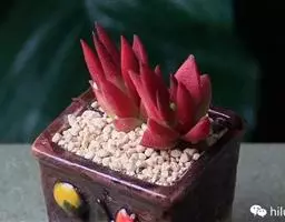 叶子表面宽厚,富肉质感且带有磨纱质感,看像石头质地;开红色小花,生于植株顶部,倒伞形密生,形状像花…