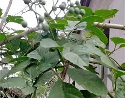 果实近球形,直径0.8厘米,有种子2-3颗; 种子倒卵圆形,顶端近圆形,基部有短喙,种脐在种子背面中部向上渐狭呈卵椭圆形,顶端种脊突出,腹部中棱脊突出,两侧洼穴呈沟状楔形,上部宽,斜向上展达种子中部以上。花期6-8月,果期9-11月。