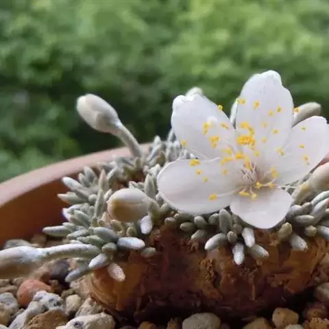露薇花,别名琉维草,学名Lewisia cotyledon,马齿苋科;露薇花属,原产美国西海岸中部山区。花语是童话般的爱。花白色,花期早春至夏。根肉质,叶倒卵状。耐寒性不强。喜春季湿润、夏季干燥环境。在气候潮湿地区,宜全光照。适宜肥沃、深厚的砂质土壤。繁殖用播种繁殖或于春季分株。用于岩石园,近年流行作盆栽。
