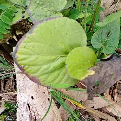 叶均基生,呈莲座状;叶片宽卵形或近圆形,长1-3.5厘米,宽1-3厘米,先端钝、锐尖或稀渐尖,基部弯缺浅或深而狭窄,边缘具浅而钝的锯齿,两面密生白色短柔毛,果期叶片显著增大,长可达8厘米,宽约6厘米,基部心形;叶柄具狭翅,被倒生短柔毛,花期长2-5厘米,果期长达19厘米;托叶膜质,披针形,长1-1.5厘米,先端渐尖,基部与叶柄合生,边缘具较稀疏的流苏状细齿。