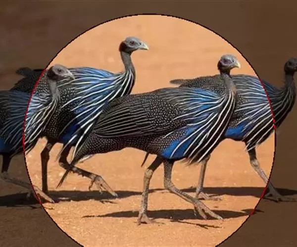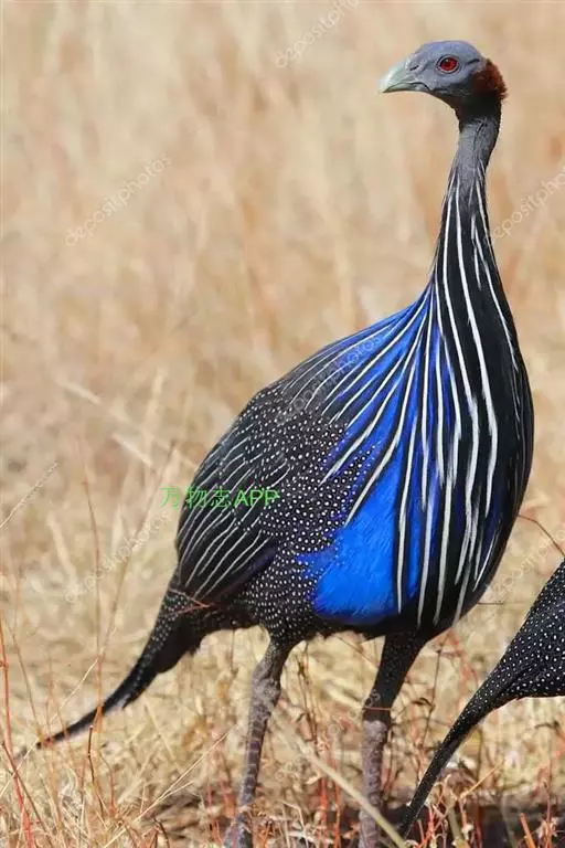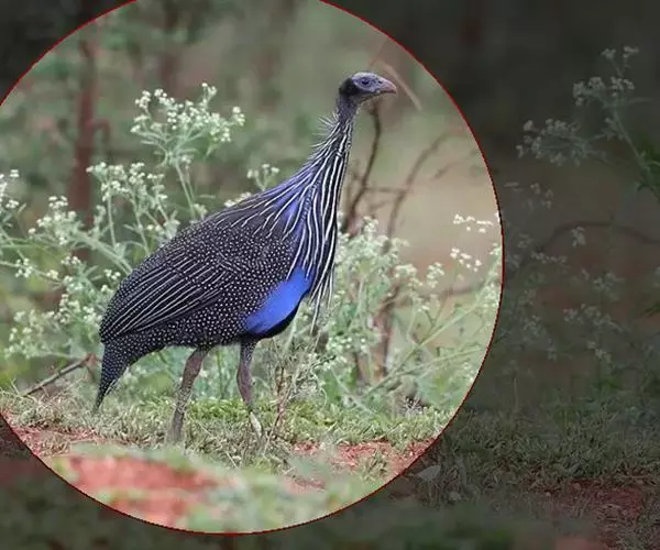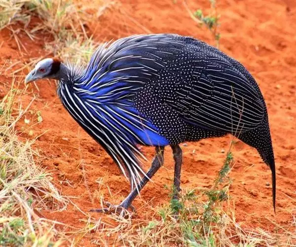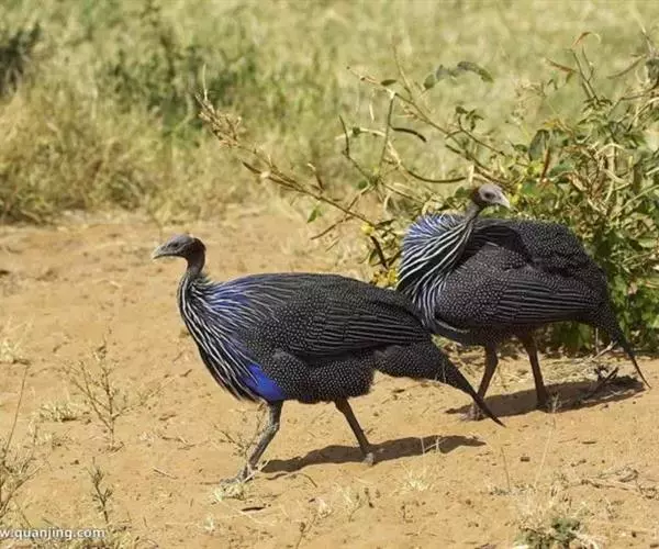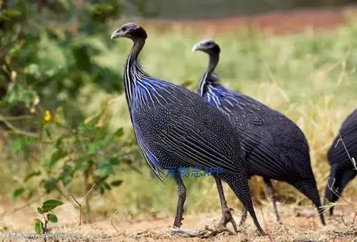 鹫珠鸡(学名:Acryllium vulturinum):是珠鸡科中体形最大的一种,因头颈部像兀鹫而得名。雌雄羽色相似,为黑色基底上遍布白色点斑,如同珍珠。以各种植物的种子和小型动物为食。走禽。体结实,喙短,呈圆锥形,适于啄食植物种子;脚强健,具锐爪,善于行走和掘地寻食;雄鸟具大的肉冠和美丽的羽毛;跗蹠后缘具距。