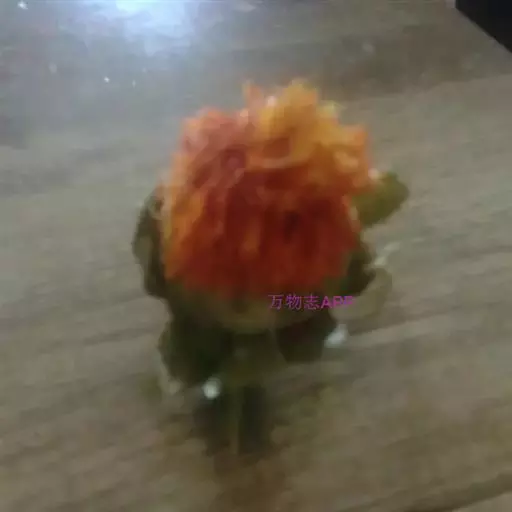 头状花序多数,在茎枝顶端排成伞房花序,为苞叶所围绕,苞片椭圆形或卵状披针形,包括顶端针刺长2.5-3厘米,边缘有针刺,针刺长1-3毫米,或无针刺,顶端渐长,有篦齿状针刺,针刺长2毫米。总苞卵形,直径2.5厘米。总苞片4 层,外层竖琴状,中部或下部有收溢,收缢以上叶质,绿色,边缘无针刺或有篦齿状针刺,针刺长达3毫米,顶端渐尖,有长1-2毫米,收溢以下黄白色;中内层硬膜质,倒披针状椭圆形至长倒披针形,长达2.3厘米,顶端渐尖。全部苞片无毛无腺点。小花红色、桔红色,全部为两性,花冠长2.8厘米,细管部长2厘米,花冠裂片几达檐部基部。