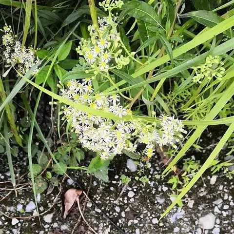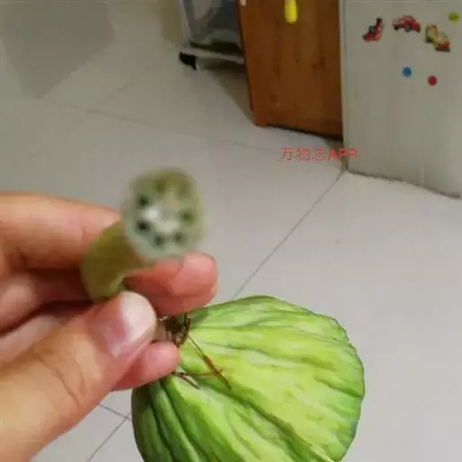 瘦果倒卵形,长5.5毫米,宽5毫米,乳白色,有4 棱,棱在果顶伸出,侧生着生面。无冠毛。花果期5-8月。