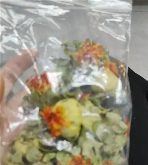 红花饼:又名片红花。为红花趁鲜捣泥,摊成薄片状,晒干入药者。