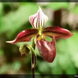 紫纹兜兰 Stein)是兰科兜兰属的地生或半附生植物。叶基生,叶片狭椭圆形或长圆状椭圆形,…