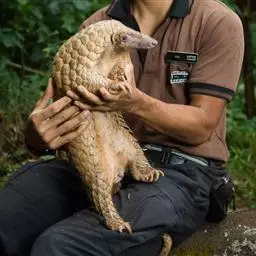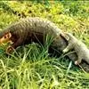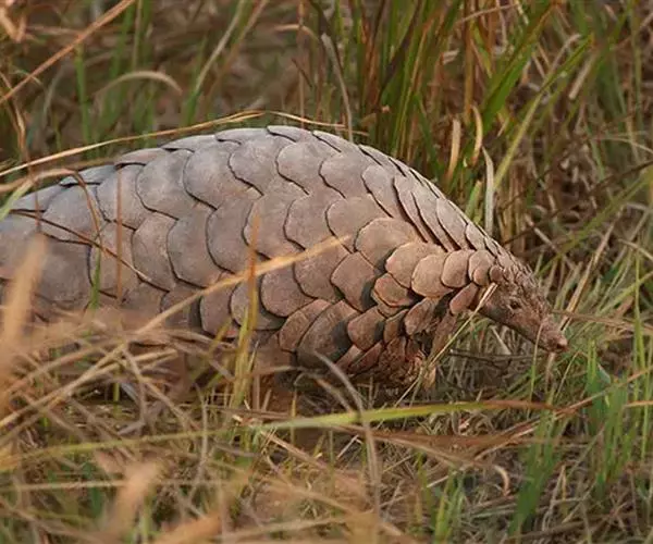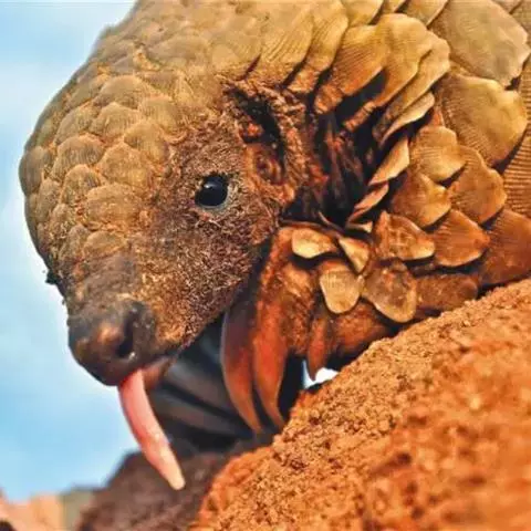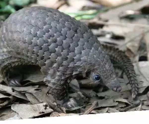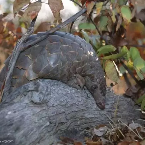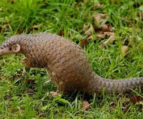 穿山甲(学名:Manis pentadactyla):头体长42-92厘米,尾长28-35厘米,体重2-7千克;鳞片与体轴平行,共15-18列。尾上另有纵向鳞片9-10 片。鳞片棕褐色,老年兽的鳞片边缘橙褐或灰褐色,幼兽尚未角化的鳞片呈黄色。吻细长。脑颅大,呈圆锥形。