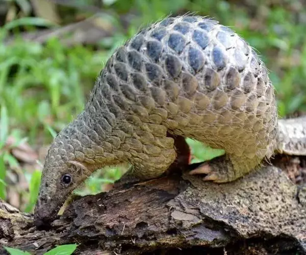 穿山甲头体长42-92厘米,尾长28-35厘米,体重2-7千克;吻细长。脑颅大,呈圆锥形。具有一小眼睛,形体狭长,全身有鳞甲,四肢粗短,尾扁平而长,背面略隆起。不同个体体重和身长差异极大。头呈圆锥状,眼小,吻尖。舌长,无齿。耳不发达。足具5趾,并有强爪;前足爪长,尤以中间第3爪特长,后足爪较短小。全身鳞甲如瓦状。鳞片与体轴平行,共15-18列自额顶部至背、四肢外侧、尾背腹面都有。尾上另有纵向鳞片910 片。鳞甲从背脊中央向两侧排列,呈纵列状。鳞片呈棕色,腹部的鳞片略软,呈灰白色,老年兽的鳞片边缘橙褐或灰褐色,幼兽尚未角化的鳞片呈黄色。鳞有三种形状
