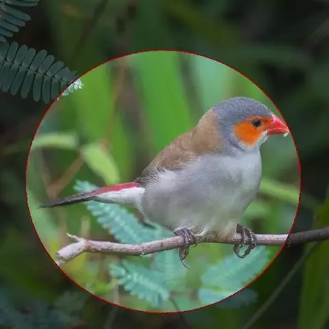 红梅花雀小型鸟类,体长9-10厘米。雄鸟通体朱红色,背、肩、胸等满布白色小斑点,…