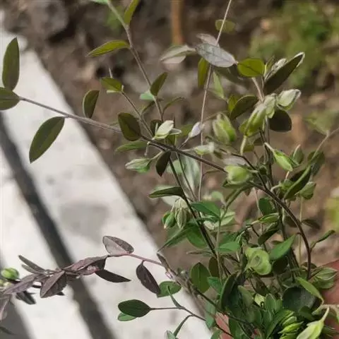荷包山桂花是灌木或小乔木植物,高1-5米;小枝密被短柔毛,具纵棱;芽密被黄褐色毡毛。单叶互生,叶片纸质,椭圆形、长圆状椭圆形至长圆状披针形,长6.5-14厘米,宽2-2.5厘米,先端渐尖,基部楔形或钝圆,全缘,具缘毛,叶面绿色,背面淡绿色,两面均疏被短柔毛,沿脉较密,后渐无毛,主脉上面微凹,背面隆起,侧脉5-6对,于边缘附近网结,细脉网状,明显;叶柄长约1厘米,被短柔毛。