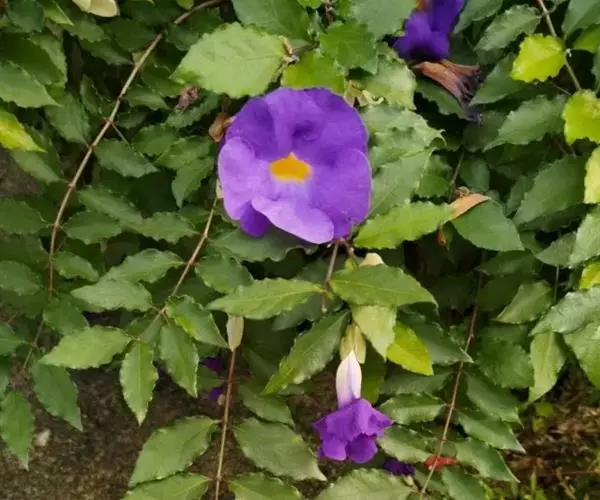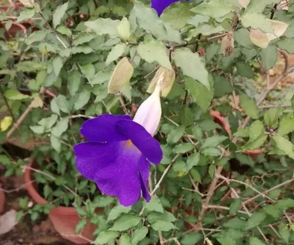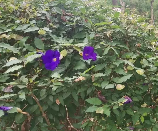 爵床科山牵牛属多年生常绿灌木,植株高2-3米,分枝多,枝条较柔软,幼茎四棱形,绿色至深褐色。蓝吊钟…