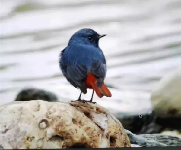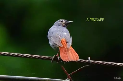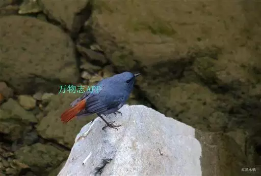 红尾水鸲(学名:Rhyacornis fuliginosus)是鸫科水鸲属的小型鸟类,雄鸟通体大都暗灰蓝色;翅黑褐色;尾羽和尾的上、下覆羽均栗红色。雌鸟上体灰褐色;翅褐色,具两道白色点状斑;尾羽白色、端部及羽缘褐色;尾的上、下覆羽纯白;下体灰色,杂以不规则的白色细斑。