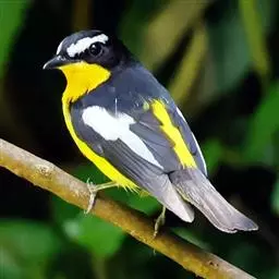 小仙鹟:体长11-13厘米,是一种深色鹟。雄鸟深蓝,脸侧及喉黑,臀白,前额、颈侧及腰为闪辉蓝色。…