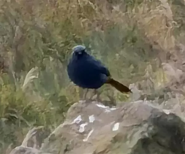 赭红尾鸲:小型鸟类,体长13-16厘米。雄鸟前额、头侧、颈侧、颏至胸概黑色,头顶和背灰色或黑色,…