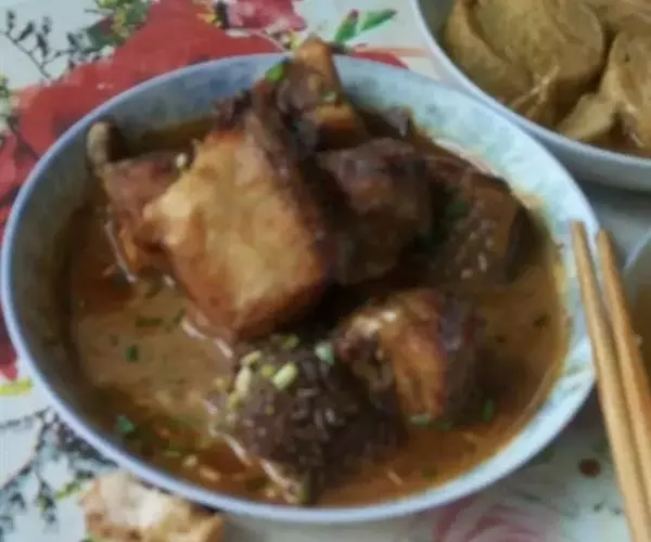 沙茶面是福建省闽南地区、台湾地区和东南亚地区的一道特色美食,中国的沙茶面分闽南沙茶,广东潮汕沙茶等风味。其妙处在在于沙茶酱的制作,而沙茶酱用以制作汤头。沙茶酱主料有虾干,鱼干,葱头,蒜头,老姜等十几种食材构成,经油炸香酥再研磨细,制成沙茶酱待用。