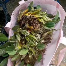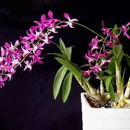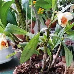 通常选用四壁多孔的塑料或陶瓷花盆,用碳根、泥炭藓、树皮块、木炭块等作盆栽材料。根据兰苗的大小,选择不同规格的花盆,但不宜用大盆栽小苗口上述栽好材料在使用前必需在清水中浸泡1天以上备用。盆底要多垫大瓦片或碎砖块,深度至盆底约1/3处,然后将兰苗放于盆中央,并在一旁插一细竹竿以固定兰苗,再填入其他栽培材料,注意根与根之间用材料隔开。