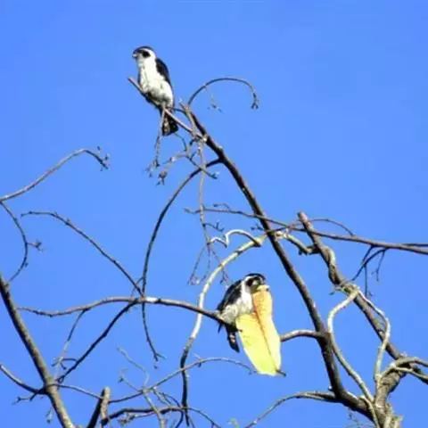 凤头卡拉鹰 凤头卡拉鹰体长49~59厘米,翼展1米左右,体重835~955克,雌性比雄性略大,背部及双翅为黑色,头顶、颈部、尾部为白色。虽然名字叫鹰,但是实际上凤头卡拉鹰属于隼科,它和游隼、燕隼的亲缘关系更近一些。凤头卡拉鹰的英文名称叫(Crested Caracara),源自它头部特殊的冠羽和这种鸟粗糙刺耳的叫声,意思是“戴头饰的“咔啦”鸟” 凤头巨隼 。