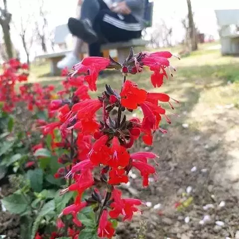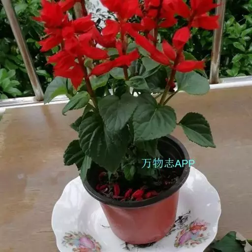 一串红,又称爆仗红、象牙红,为唇形科鼠尾草属植物。