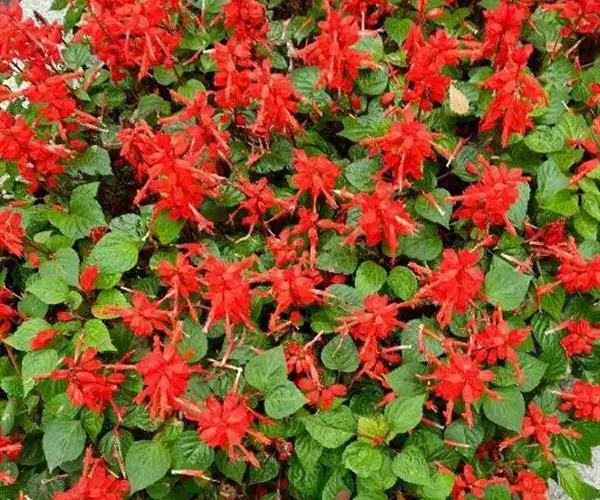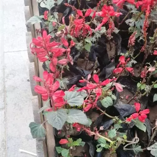 一串红常用红花品种,秋高气爽之际,花朵繁密,色彩艳丽。常用作花丛花坛的主体材料。也可植于带状花坛或自然式纯植于林缘.常与浅黄色美人蕉、矮万寿菊、浅蓝或水粉色水牡丹、翠菊、矮霍香蓟等配合布置。一串红矮生品种更宜用于花坛,白花品种除与红花品种配合观赏效果较好外。一般白花、紫花品种的观赏价值不及红花品种。