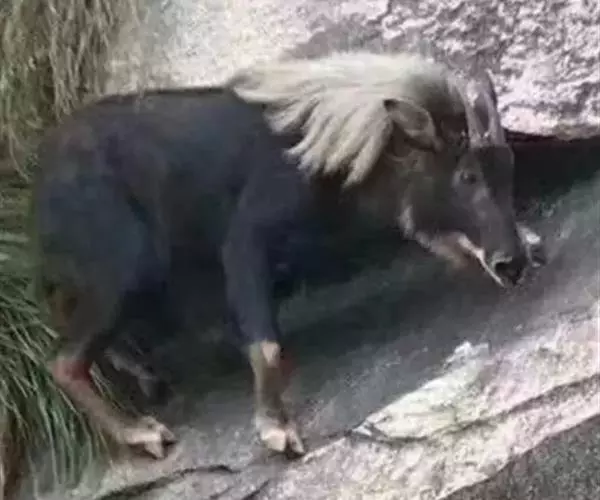 鬣羚[liè líng]也叫明鬃羊,属牛科,典型林栖兽类,是亚洲东南部热带、亚热带地区的典型动物之一,主要活动于海拔1000~4400 米针阔混交林、针叶林或多岩石的杂灌林。它的角像鹿不是鹿、蹄像牛不是牛、头像羊不是羊、尾像驴不是驴,人们据此将其与驯鹿、驼鹿和麋鹿一起称为“四不像”。因其最早是在印尼的苏门答腊被发现的,因此又叫苏门羚。而浙江省个别地区称之为牧羊。在中国,主要分布于甘肃、青海、浙江、安徽、湖北、江西、四川、云南、西藏、福建、广东、广西以及陕南等地,是中国国家二级重点保护动物。