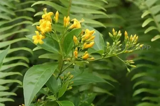 钩吻(学名:Gelsemium elegans (Gardn. & Champ. ) Benth.),是马钱科、钩吻属常绿木质藤本,小枝圆柱形,幼时具纵棱;叶片膜质,卵形、卵状长圆形或卵状披针形,除苞片边缘和花梗幼时被毛外,全株均无毛。叶片膜质,卵形、卵状长圆形或卵状披针形,种子扁压状椭圆形或肾形,边缘具有不规则齿裂状膜质翅。5-11月开花,7月至翌年3月结果。