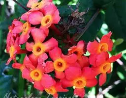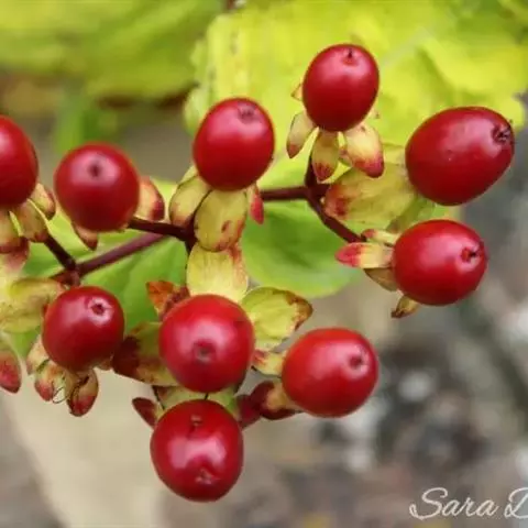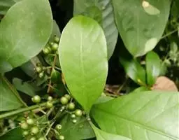 聚伞花序短小,2至数个簇生于叶腋或在老枝的叶痕上,有极短的总花梗;苞片合生,二型,通常2枚阔卵形,顶端截平,2枚线形,有时呈叶形。花未见。浆果大,阔椭圆形,长19-21毫米,直径15-17毫米,成熟时鲜红色,顶端冠?钥?4-7毫米、凸起的花盘;种子长圆形,长15毫米,直径约10毫米,平滑。花期1-5月。