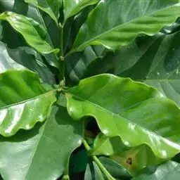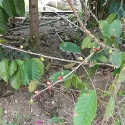 1、咖啡炭疽病的症状:主要发生在叶片、果实、枝条上。叶片感病后,上下表面均有淡褐色病斑,直径3毫米左右,中心灰白色,边缘黄色,后期完全变成灰色,有同心轮纹排列的黑色小点,病斑多在叶缘。枝条感病后产生褐色斑,最后引起枝条回枯,果实感病后形成僵果,果肉变硬,紧贴于种豆上,果皮上有紫色病斑,严重时落果。