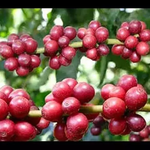大粒咖啡(学名:Coffea liberica Bull ex Hiern)茜草科植物,小乔木或大灌木,高6-15米;枝开展。叶薄革质,椭圆形、倒卵状椭圆形或披针形,顶端阔急尖,基部阔楔尖,全缘,两面无毛,下面脉腋有小窝孔,窝孔内具短丛毛;侧脉每边8-10条;叶柄粗壮;托叶基部合生,阔三角形,顶端钝,罕有凸尖。聚伞花序短小,2至数个簇生于叶腋或在老枝的叶痕上,有极短的总花梗;苞片合生,二型,通常2枚阔卵形,顶端截平。花未见。浆果大,阔椭圆形,成熟时鲜红色,顶端冠以宽4-7毫米、凸起的花盘;种子长圆形,直径约10毫米,平滑。花期1-5月。