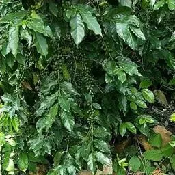 咖啡园地开垦 1、开挖种植沟开挖质量影响到咖啡园的水土保持、农业技术措施的实施、咖啡树的生长和产量的大事,要认真落实。开挖方法,缓坡地可以从坡下往坡上开挖,而陡坡地则宜从坡上往坡下开挖,就可最大限度减少上沟的土壤滚入下一沟的现象。种植沟的规格为口宽0.60米,底宽0.40米,深0.50米。开挖时,将沟面的表土挖起。堆放在沟上方,再把沟内底土挖出堆放在沟下方,沟深度以下口边为准,种植沟内的树根、石头需全部清理出去,平台之间的树木应保留,不得随意砍伐。开挖时间以冬前10月至春季2月为宜,最迟应在5月结束。 2、回土、筑平台在定植前15—30天回土,第一次回土厚度0.20米,然后亩增施农家肥1500千克+磷肥100千克,底肥均匀搅拌。第二次回土将槽回满后进行平梯,要求台面宽 1.20米,台面内倾2—3度。台面整理好后将石灰粉均匀地撒施在台面上,目的是调节土壤PH值,增强土壤微生物活性,提高土壤矿物质养分的有效性。 3、挖穴、施基肥定植穴的规格一般是0.40米×0.40米×0.30米,定植前每穴施过磷酸钙0.10—0.25千克,有条件的,每穴增施有机肥3—5千克 ,肥料与穴土充分搅拌均匀,否则咖啡苗定植后将会发生肥害。 三、咖啡的定植 定植的时间选择在雨季开始后的6—7月份,定植当天是阴天或小雨天,可整天定植,若定植当天是晴天,应在上午11时前和下午4时半后定植。 苗木应选择真叶4—5对,高度0.15米以上,无分枝的健壮苗。种植株行距为1米×2米 ,每亩定植333株,将苗木切去底部0.03米后,剥去营养袋,放入穴内,营养土与平台面高度一致,扶正苗木后细土分层回填,复土后轻轻压实,使营养坨与周围的土壤有效结合。 咖啡定植结束后,全面修整平台一次,保持台面清洁、平整、内倾,定植10天后逐行检查,发现空穴、死苗、受害苗,及时补换,以达到全苗。 咖啡园的管理 1、中耕咖啡的根系随植株的生长而伸长,植后半年,根系生长幅度即超出植穴范围。所以,最好在植后半年至一年雨季来临前进行深翻,根据土壤条件及根系分布情况而定深度,一般以0.4—0.5米为宜。 2、施肥咖啡施肥要掌握肥料的种类和施肥量,既要适量,又要防止过量。施肥不足,将会出现叶黄、枯梢、落果、早衰等现象;施肥过量不仅造成浪费,会使土壤恶化。幼龄咖啡树是营养生长期,施肥应以氮、磷肥为主,适当施用钾肥以促使根系和枝叶生长,加速树冠的形成,培养良好的树型,为丰产打下基础,但施肥应掌握勤施薄施的原则。投产咖啡树的施肥,应以氮、钾肥为主,配施磷肥和其他元素肥料。采用施肥的方案是:当年定植的幼树成活后20天第一次施尿素20克/株;第二次施肥在雨季结束前(9月)施氮、磷、钾混合肥30克/株。第二年施肥第一次在2—3月份,第二次在5—6月份,第三次在8—9月份,每次各施氮、磷、钾混合肥100克/株。第三年施肥第一次在2—3月份结合中耕锄草,施油枯1000克/株,第二次在5—6月份,第三次8—9月份各施氮、磷、肥混合肥100克/株。 投产咖啡树的施肥:第一次2—3月份追施油枯1500克/株,第二次、第三次、第四次分别在5、7、9月份每株各施氮、磷、钾混合肥 150克/株。 咖啡树的施肥方法:幼龄树在离根基部 0.20米处、成龄树是在植株树冠滴水处挖环状或半环状施肥沟,宽0.20米,深0.20—0.30米,施肥后随即盖土。 3、除草咖啡园台面随时保持干净清洁无杂草,避免草与咖啡争夺养分,一般每月除草一次,离树根基部0. 30米以外用锄头结合中耕进行除草,树根基部0.30米以内用手拔除,以免伤着根茎。咖啡梗上的杂草树枝不允许用锄头铲除,避免破坏台梯及水土流失,适当保留梗子上的杂草树木可取到遮荫、保持水土、减少病虫为害咖啡的作用。