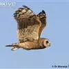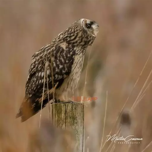 短耳鸮(学名:Asio flammeus)是鸮形目鸱鸮科的鸟类。体矮,体长约38-40厘米,黄褐色鸮鸟。翼长,面庞显著,短小的耳羽簇于 野外不可见,眼为光艳的黄色,眼圈暗色。上体黄褐,满布黑色和皮黄色纵纹;下体皮黄色,具深褐色纵纹。飞行时黑色的腕斑显而易见。栖息于开阔田野,白天亦常见。成群营巢于地面。以小鼠、鸟类、昆虫和蛙类为食。是分布最广的鸮类之一,分布自北极的周围到北温带,见于夏威夷和南美洲的大部分地区,可迁徙到更南的地方。