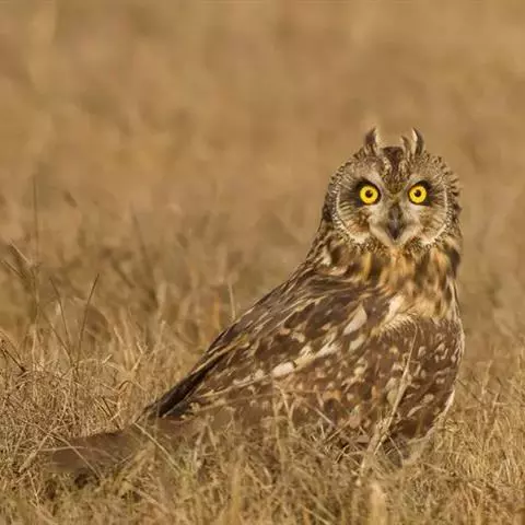 短耳鸮又名小耳木兔、田猫王、夜猫子等,是鸮形目鸱鸮科耳鸮属中小型猛禽动物。成鸟面盘显著,…