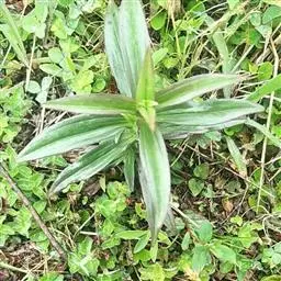 多年生草本,高30-60厘米。根茎平卧或直立,短缩或长达5厘米,具多数粗壮、略肉质的须根。花枝单生,直立,黄绿色或紫红色,中空,近圆形,具条棱,棱上具乳突,稀光滑。枝下部叶膜质,淡紫红色,鳞片形,长4-6毫米,先端分离,中部以下连合成筒状抱茎;中、上部叶近革质,无柄,卵形或卵状披针形至线状披针形,长2-7厘米,宽2-3厘米,有时宽仅约0.4厘米,愈向茎上部叶愈小,先端急尖,基部心形或圆形,边缘微外卷,粗糙,上面密生极细乳突,下面光滑,叶脉3-5条,在上面不明显,在下面突起,粗糙。