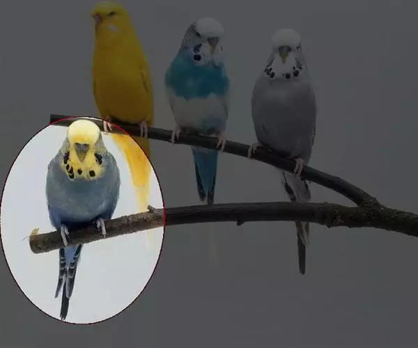 2.淡色型虎皮鹦鹉可分为上体黄色,腹部绿色和上体白色,腹部蓝色两个品系,翅上均有黑色斑点(也有一些没有)。