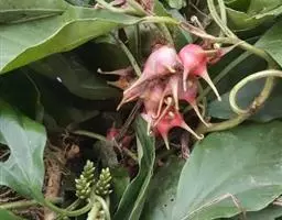 雌花1-3,生花序轴基部,连柄长近4毫米,萼片覆瓦状排列,卵状披针形或长圆状披针形,长2-3毫米,无毛,花柱受粉后伸出花外甚长,上端旋卷。果熟时黄色或红色,球形,和宿存花柱各长1厘米。花期2-5月,果期9-10月。