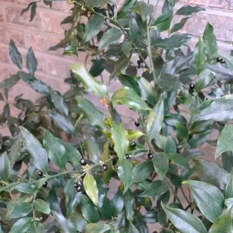 板凳果(P.axillaris)常绿亚灌木,铺地生长。株高20cm,冠径25cm。每个茎顶端生3~6片叶,叶卵形,边缘有锯齿,革质。穗状花序直立,花小,白色,春末开花。
