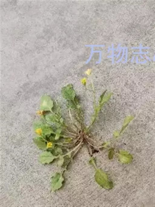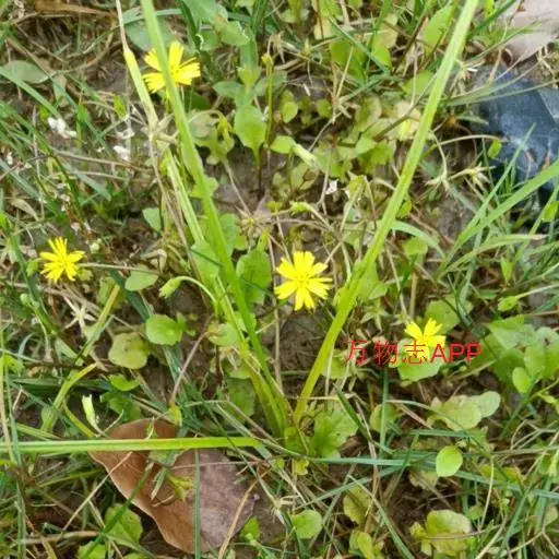 一年或二年细弱草本,高5-30cm。基生叶丛生,有柄;叶片长4-18cm,宽1-3cm,先端圆钝或短尖,顶端裂片较大,卵圆形,边缘羽状分裂,两侧裂片3-4对,短椭圆形;茎生叶1-2,有短柄或近无柄。头状花序成稀疏的伞房状圆锥花丛,有细梗,果时常下垂;总苞圆柱状钟形,外层总苞片小,卵状披针形,长约1mm,内层总苞片5-6,长椭圆状披针形,长约4.5mm;花托平坦,无毛;全部为舌状花,黄色。瘦果椭圆状披针形,扁平,长4-5mm,等于或长于总苞片,成熟后黄棕色,无毛,背腹面各有5-7肋,先端两侧各有1钩刺,无冠毛。花果期4-5月。