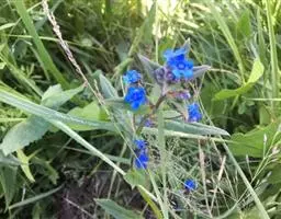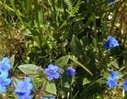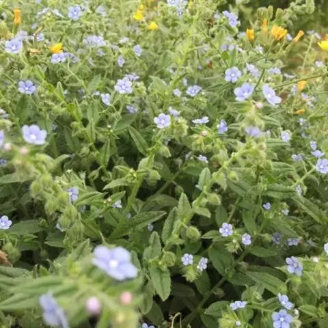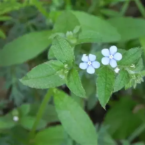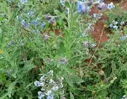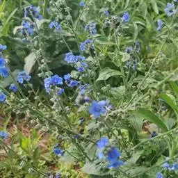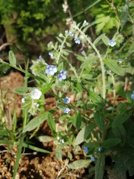 多苞斑种草为一年生或两年生草本。成株 茎直立或上升被开展的糙毛,有分枝。叶卵状披针形或狭椭圆形。镰状聚伞花序狭长;苞片狭卵形,与花梗近等长或稍长;花萼5裂近基部,裂片线装披针形,外被糙毛;花冠淡蓝色,喉部具5个鳞片状附属物,花冠5裂,裂片卵圆形;雄蕊5,内藏;子房4裂,花柱内藏。子实小坚果4,肾形或卵状椭圆形,密生小疣状突起,腹面具纵向椭圆状的凹陷。秋季或春季萌发,花期5-7月,果期6-8月。种子繁殖。