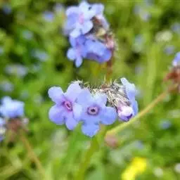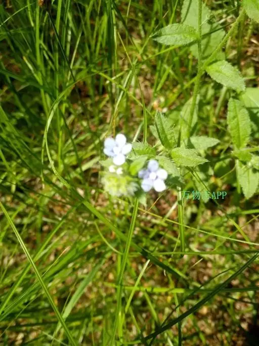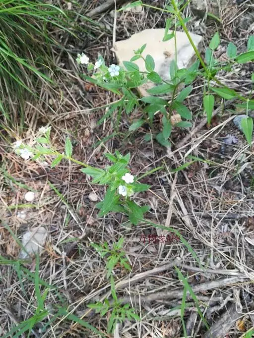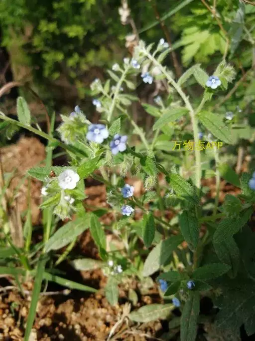 花序生茎顶及腋生枝条顶端,长10-20厘米,花与苞片依次排列,而各偏于一侧;苞片长圆形或卵状披针形,长0.5-1.5厘米,宽0.3-0.5毫米,被硬毛及短伏毛;花梗长2-3毫米,果期不增长或稍增长,下垂;花萼长2.5-3毫米,外面密生硬毛,裂片披针形,裂至基部;花冠蓝色至淡蓝色,长3-4毫米,檐部直径约5毫米,裂片圆形,喉部附属物梯形,高约0.8毫米,先端微凹;花药长圆形,长与附属物略等,花丝极短,着生花冠筒基部以上1毫米处;花柱圆柱形,极短,约为花萼1/3,柱头头状。