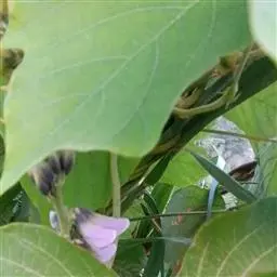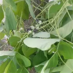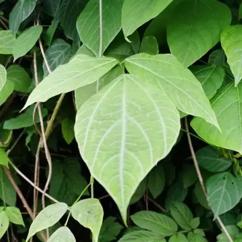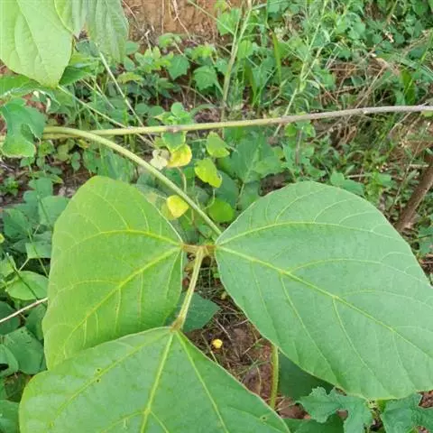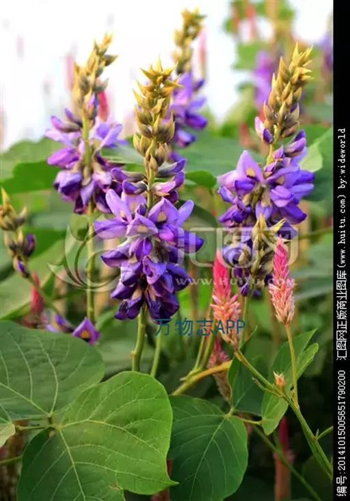 粗壮藤本,长可达8米,全体被黄色长硬毛,茎基部木质,有粗厚的块状根。羽状复叶具3小叶;托叶背着,卵状长圆形,具线条;小托叶线状披针形,与小叶柄等长或较长;小叶三裂,偶尔全缘,顶生小叶宽 卵形或斜卵形,长8-15(-19)厘米,宽5-12(-18)厘米,先端长渐尖,侧生小叶斜卵形,稍小,上面被淡黄色、平伏的蔬柔毛。下面较密;小叶柄 被黄揭色绒毛。荚果长椭圆形,长5-9厘米,宽8-11毫米,扁平,被褐色长硬毛。花期9-10月,果期11-12月。生于山坡草丛中或路旁及较阴湿的地方,或生于海拔1000-3200米的山沟林中。