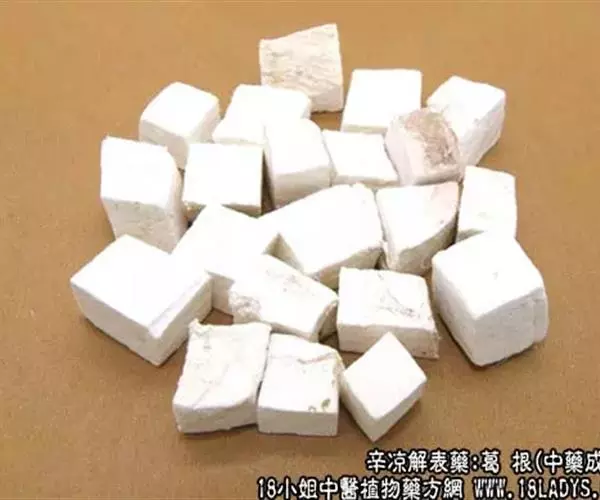 葛根,中药名。为豆科植物野葛的干燥根,习称野葛。秋、冬二季采挖,趁鲜切成厚片或小块;干燥。甘、辛,凉。有解肌退热,透疹,生津止渴,升阳止泻之功。常用于表证发热,项背强痛,麻疹不透,热病口渴,阴虚消渴,热泻热痢,脾虚泄泻。