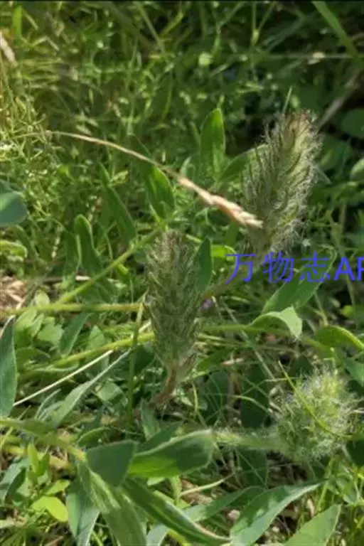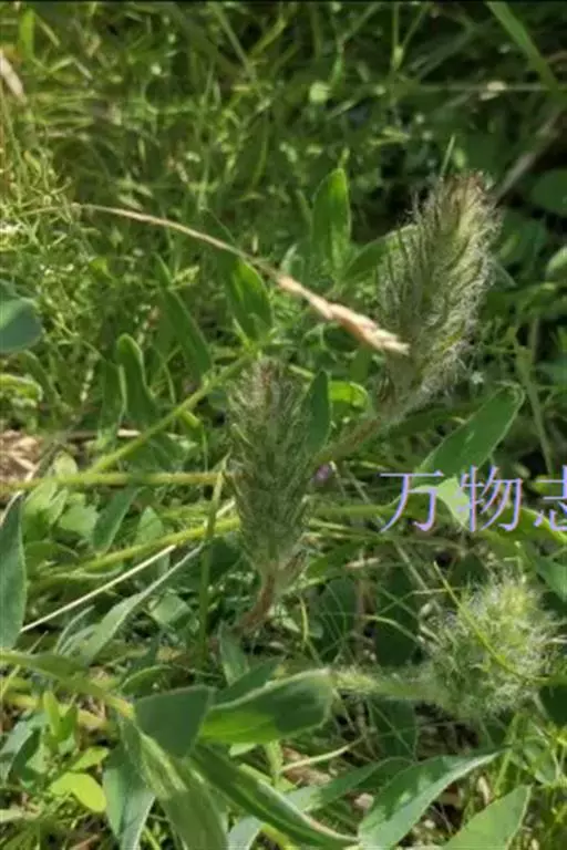 多花组成密长穗形总状花序;花葶粗壮,长于叶,长20-50毫米,密被长硬毛,或至无毛;苞片草质,线形或线状披针形,比花萼长,长7 (13) -8 (-20) 毫米,宽1-3毫米, 先端渐尖,疏被长硬毛;花长15-18毫米;花萼筒形或筒状钟形,长10-13 (-14) 毫米,宽3-4毫米,密被白色长硬毛,萼齿线形,长5-7毫米;花冠蓝紫色,紫红色或黄白色,旗瓣匙形,长约20毫米,宽约6毫米,先端圆形,基部下延成瓣柄,翼瓣长约17毫米,宽约3毫米,瓣片倒卵状长圆形,先端钝,龙骨瓣长约17毫米,瓣片斜长圆形,喙长1-3毫米;子房密被白色柔毛,胚珠20-24。