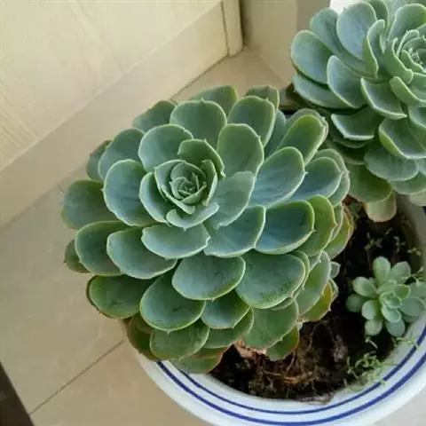 薄叶蓝鸟 叶片蓝绿色,叶尖红色,带粉,花型紧凑,非常漂亮。原产于墨西哥,现世界各地均有栽培。