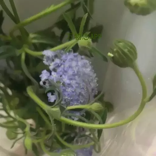 一年生草本。夏季开花。半耐寒。适生于光照或庇荫环境,喜肥沃、排水良好的土壤。需支撑。早春播种繁殖,其上需覆草。直立。多分枝。生长速度中等。高45cm,冠径20cm。叶深裂,淡绿色。头状花序球状。径5cm。花小。蓝色。夏季开放。
