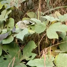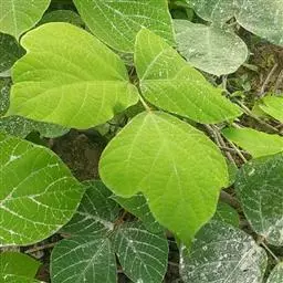 一年生草本,高30-90厘米。茎粗壮,直立,或上部近缠绕状,上部多少具棱,密被褐色长硬毛。叶通常具3小叶;托叶宽卵形,渐尖,长3-7毫米,具脉纹,被黄色柔毛;叶柄长2-20厘米,幼嫩时散生疏柔毛或具棱并被长硬毛;小叶纸质,宽卵形,近圆形或椭圆状披针形,顶生一枚较大,长5-12厘米,宽2.5-8厘米,先端渐尖或近圆形,稀有钝形,具小尖凸,基部宽楔形或圆形,侧生小叶较小,斜卵形,通常两面散生糙毛或下面无毛;侧脉每边5条;小托叶铍针形,长1-2毫米;小叶柄长1.5-4毫米,被黄褐色长硬毛。