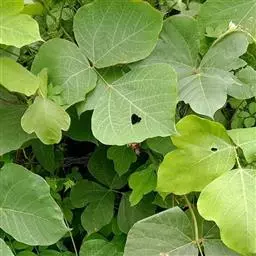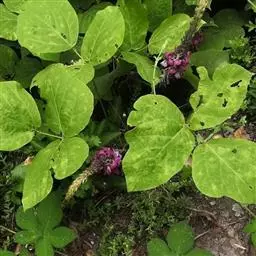 危害特点:大豆灰斑病主要为害成株期叶片,也可侵染幼苗、茎、荚和种子。病粒出生的幼苗子叶上出现半圆或圆形褐色病斑。成株期叶片上的病斑最初为退绿圆斑,逐渐发展成为边缘褐色、中央灰色或灰褐色的蛙眼状斑,故又名蛙眼病。后期也可形成不规则形病斑。潮湿时叶背面病斑中央部分密生灰色霉层,为病菌的分生孢子。严重时病斑布满叶面,病斑合并,叶片枯死脱落。茎斑纺锤形或椭圆形,荚斑圆形或椭圆形,因荚上多毛,不易看到霉层。籽粒上的病斑与叶斑相似,多为圆形蛙眼状。