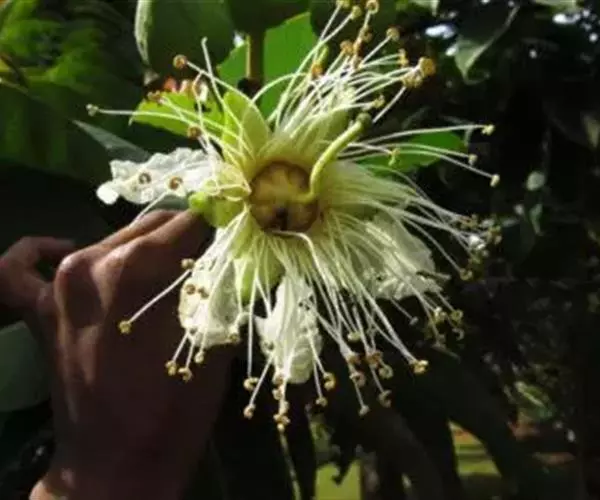 花5-6基数;花梗长3-4厘米,有关节;花开放时长2.2-2.8厘米(不连花丝),直径3-4厘米;萼筒阔杯形,裂片长约2厘米,宽约1厘米;花瓣近卵形,连柄长2.5-3厘米,宽1.5-2厘米;雄蕊极多数,2轮排列,花丝长4-5厘米,花药长1-1.2厘米;子房半下位,6或5室,有胚珠多数,花柱长3-4厘米,柱头微裂。蒴果长3-4厘米,直径3.2-3.5厘米,成熟时从顶端向下开裂成6-9枚果爿;种子长约4毫米 。花期3-4月,果熟期6-7月。