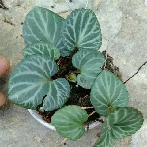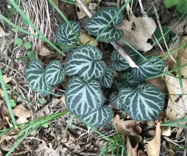 本种为低矮无茎的多年生小草本。叶片通常呈圆形,上面绿色并沿叶脉有明显的白色斑状条带,下面常带紫红色,但有时呈绿色,在自然生长状态下极易识别。但在果期或干标本上,叶下面的紫红色常退色变为绿色。