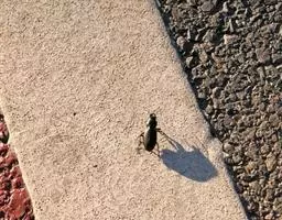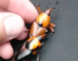 耶气步甲,鞘翅目, 步甲科(Carabidae),屁步甲属(pheropsophus),又称屁步甲,头、前胸背板棕黄色;头顶有心形黑斑;小盾片和鞘翅黑色,各鞘翅肩部和中部有1黄色斑;各鞘翅有7条纵隆脊,受惊和捕食时会从肛门里放出一种有毒雾气。