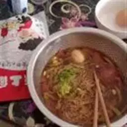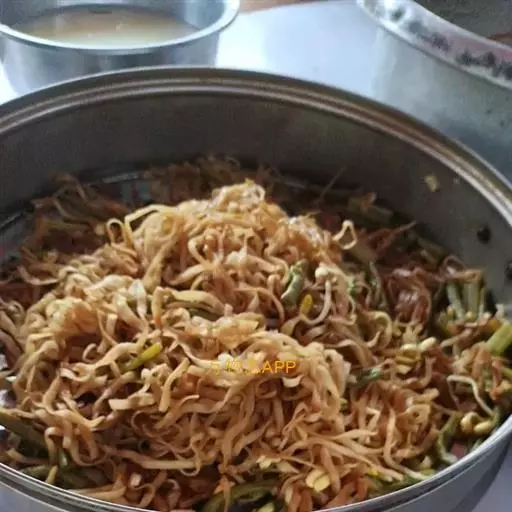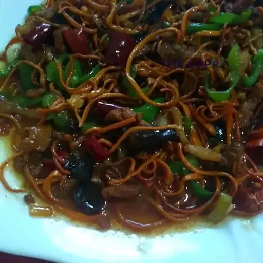 ③将腌好的肉丝与调料(B)拌匀,加盖高火5分钟;再加入面条和调料拌匀,加盖高火5分钟;最后撒上胡椒粉即可。